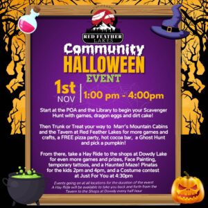 Halloween Friday, October 31, 2025. Haunted Village! Gordon Creek RV and Rigby’s Present: Age appropriate guided tours and trick or treat route of the haunted village. Starting at 5pm with the youngest, and getting a little scarier as it grows dark. More details to come!